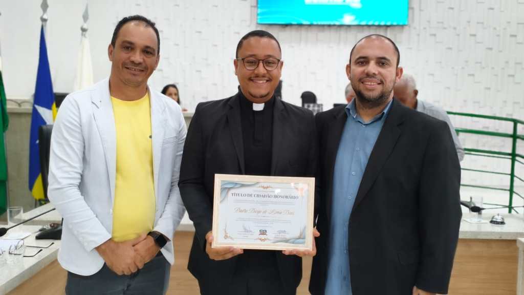 Na manhã desta terça-feira, 08 de Dezembro, a Câmara Municipal de Buritis, através de proposição do Vereador Renato Leitão, entregou três certificados de cidadão honorário do município de Buritis aos Padres Otávio Marques Ferreira e Diego Lima Dias e ao Sr Eniel Miranda de Souza em homenagem e reconhecimento aos trabalhos realizado na Paróquia Santa Marta.